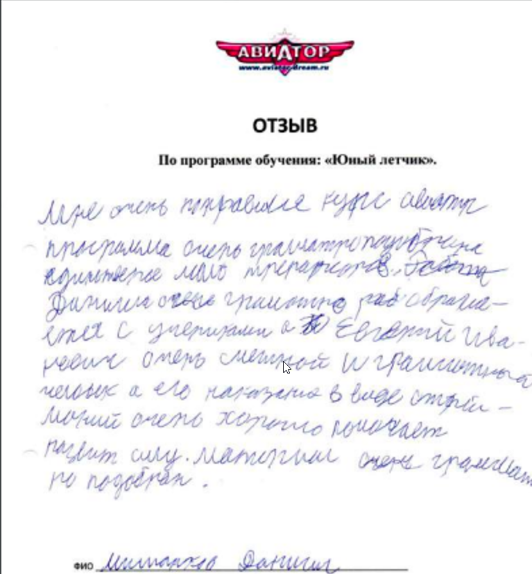 Мне очень понравился курс «АВИАТОР». Евгений Иванович очень смешной и грамотный человек.